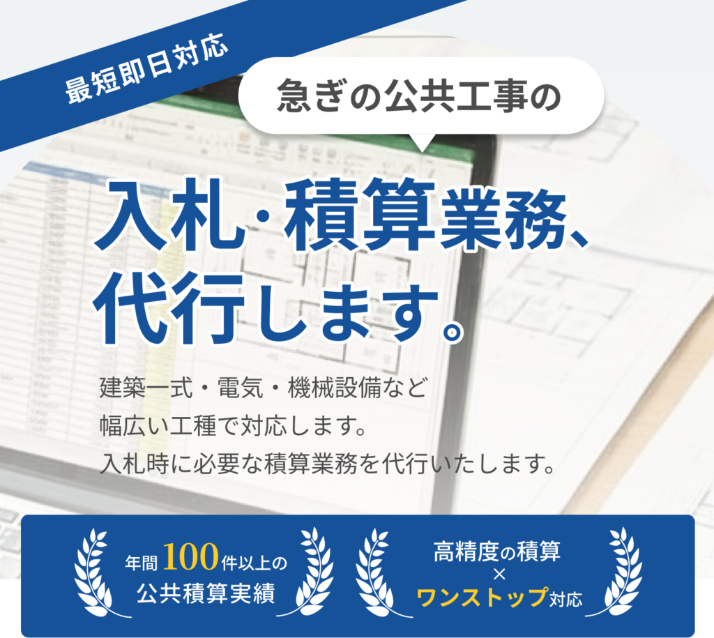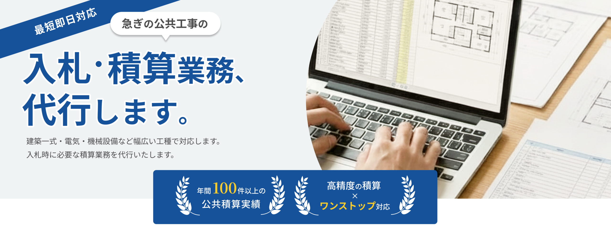 入札時の積算業務だけでなく、落札後の現場作業までワンストップで対応可能!